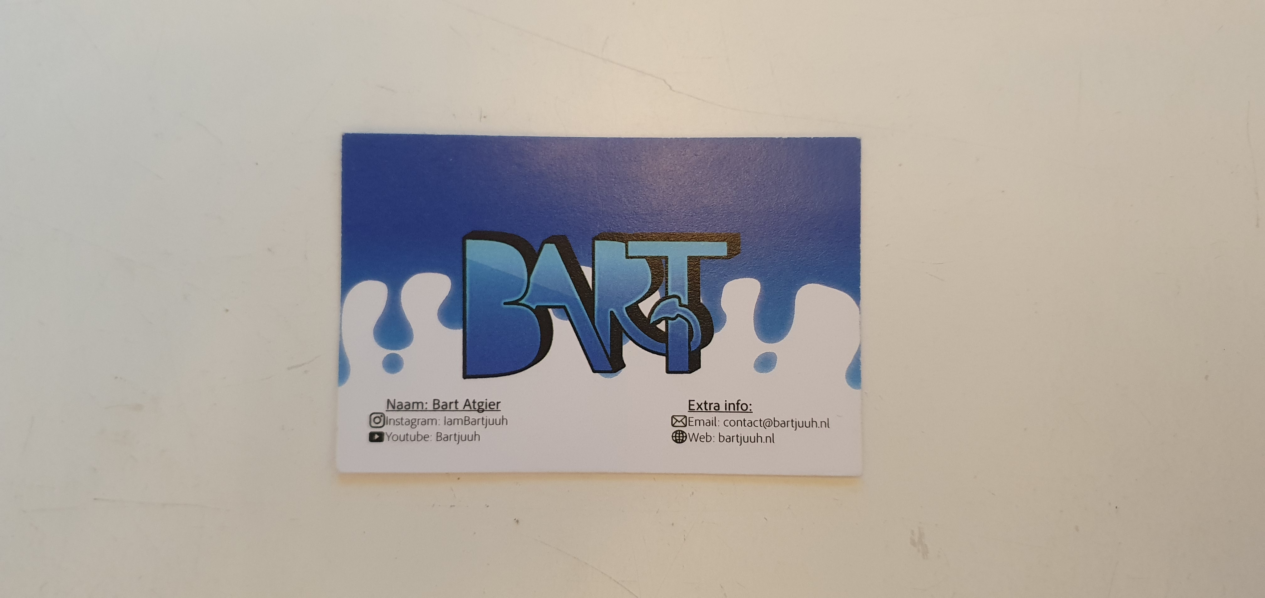 Het maken van het visite kaartje is echt iets wat bij mij hoort. Ik heb een design gemaakt waar ik zelf volledig achterstond. Ik vond het achteraf zo goed dat hij nu ook op mijn website gebruikt wordt. En ook op mijn youtube kanaal